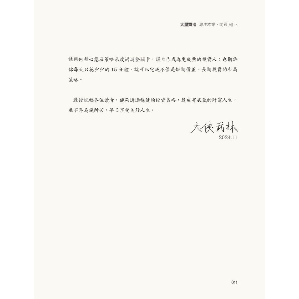 大量買進:專注本業,閒錢All In-大俠武林教小資變富有的實戰練習[79折]11101052833 TAAZE讀冊生活網路書店大量買進:專注本業,閒錢All In-大俠武林教小資變富有的實戰練習[79折]11101052833 TAAZE讀冊生活網路書店Business & InvestmentTAAZE讀冊生活網路書店
