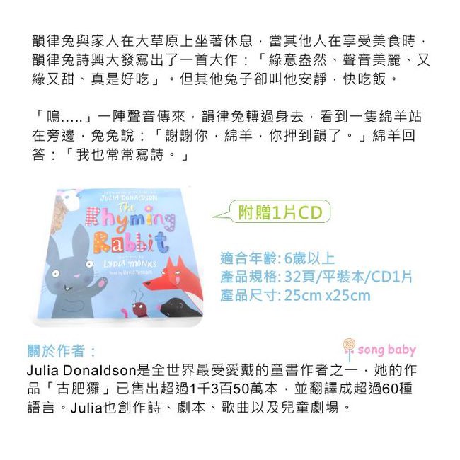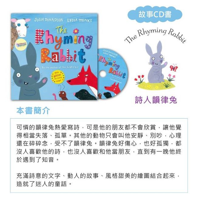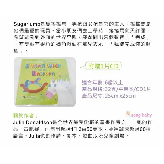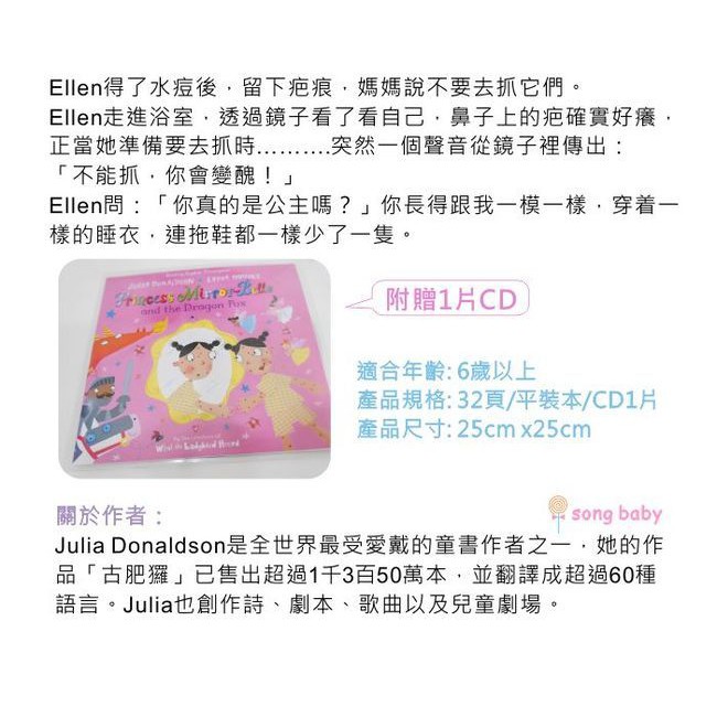 Julia Donaldson・Lydia Monks 故事繪本系列(CD書)(外文書)(福利品)公主與龍痘(黏CD處頁面破損)|詩人韻律兔|搖搖馬與獨角獸Children’s BooksSongBaby 親子生活美學館