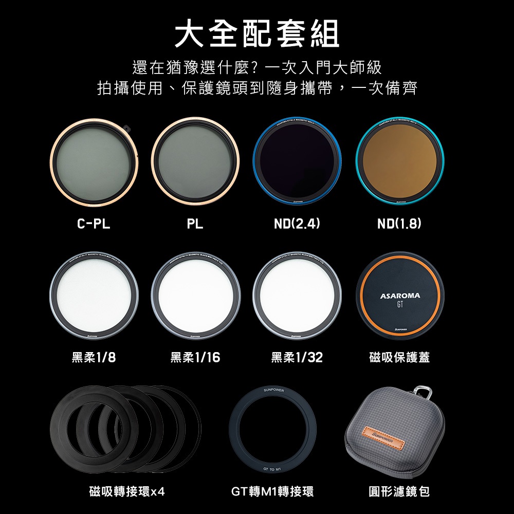 【下單請務必聊聊】SUNPOWER ASAROMA GT 磁吸式濾鏡套組【專業大全配】【下單請務必聊聊】SUNPOWER ASAROMA GT 磁吸式濾鏡套組【專業大全配】FiltersSUNPOWER 品牌旗艦館