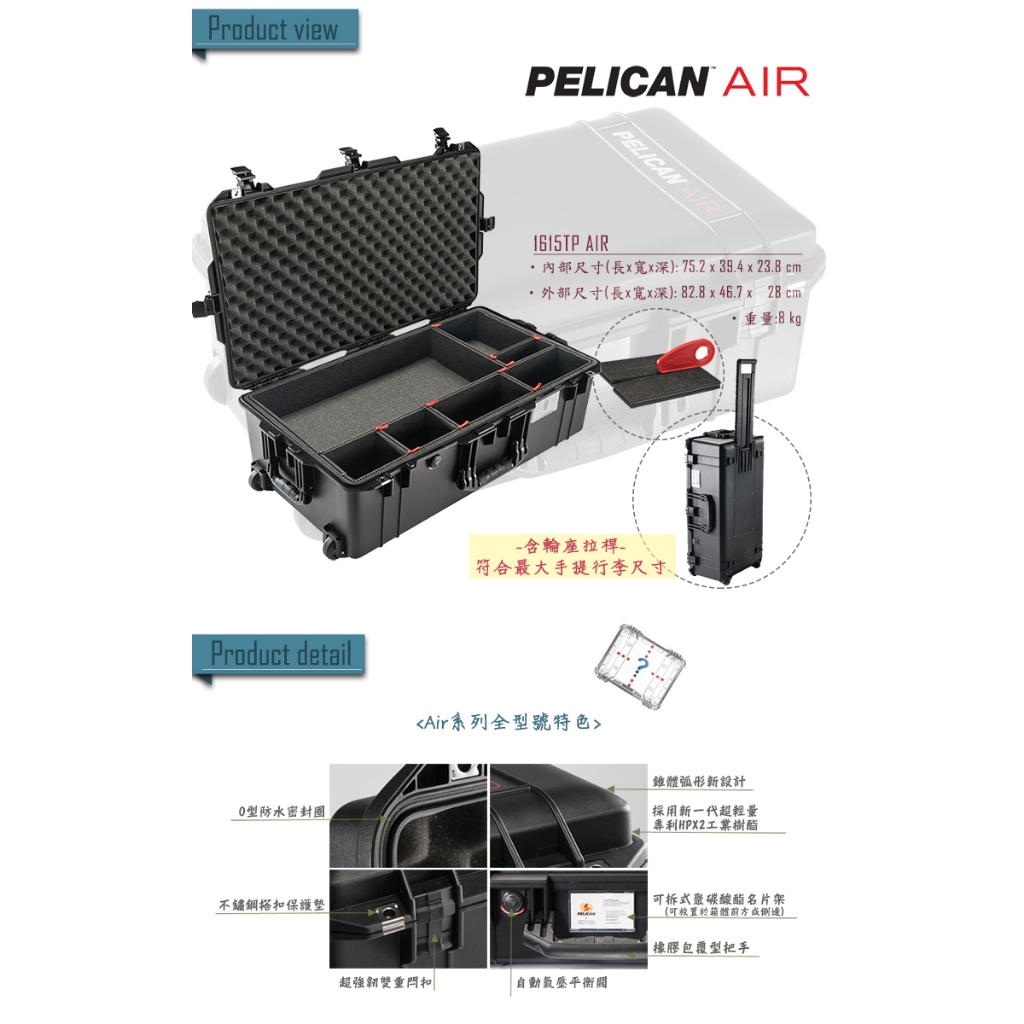 PELICAN 派力肯 1615AirTP 輪座拉桿超輕氣密箱 含TrekPak 隔板(黑)PELICAN 派力肯 1615AirTP 輪座拉桿超輕氣密箱 含TrekPak 隔板(黑)Dry Boxes & CabinetsPELICAN 派力肯官方品牌店