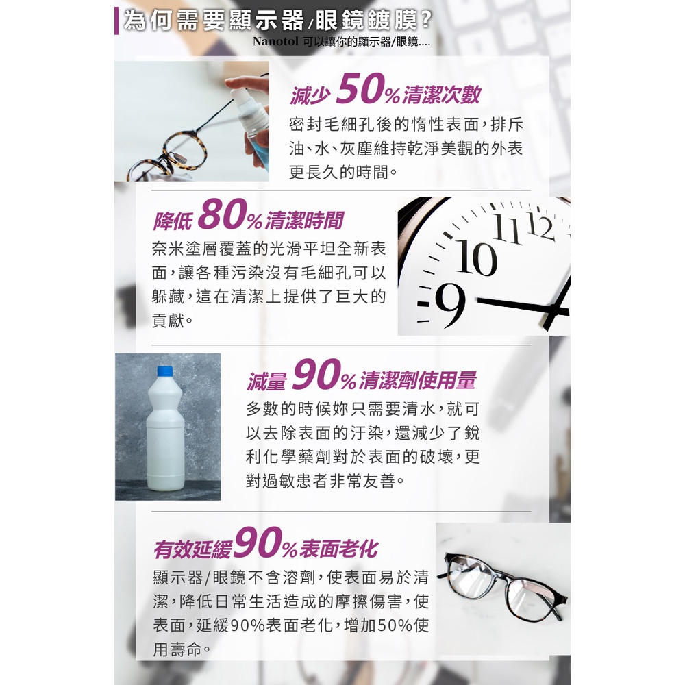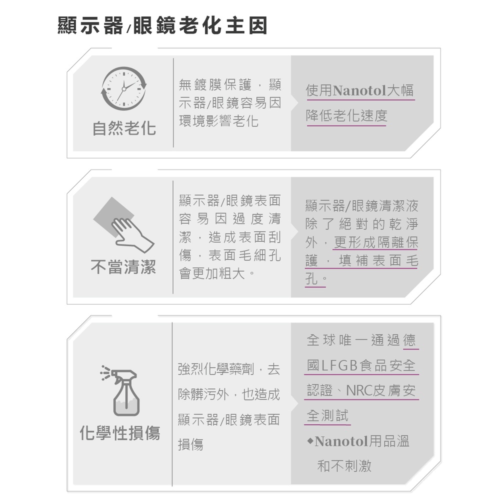 Nanotol ❙ 眼鏡&顯示器奈米清潔液 ❙ 眼鏡 相機鏡頭 手機 平板 筆電 螢幕 Mac 清潔 電腦清潔 手機清潔顯示器奈米清潔液 20ml (盒裝)|顯示器奈米清潔液 100ml(無擦拭布)Cleaning KitNANOTOL官方旗艦館