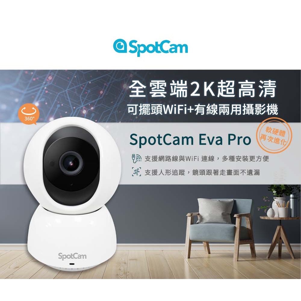 SpotCam Eva Pro +3 2K 可旋轉人形追蹤360度 網路攝影機 小型網路監視器 有線監視器 wifi