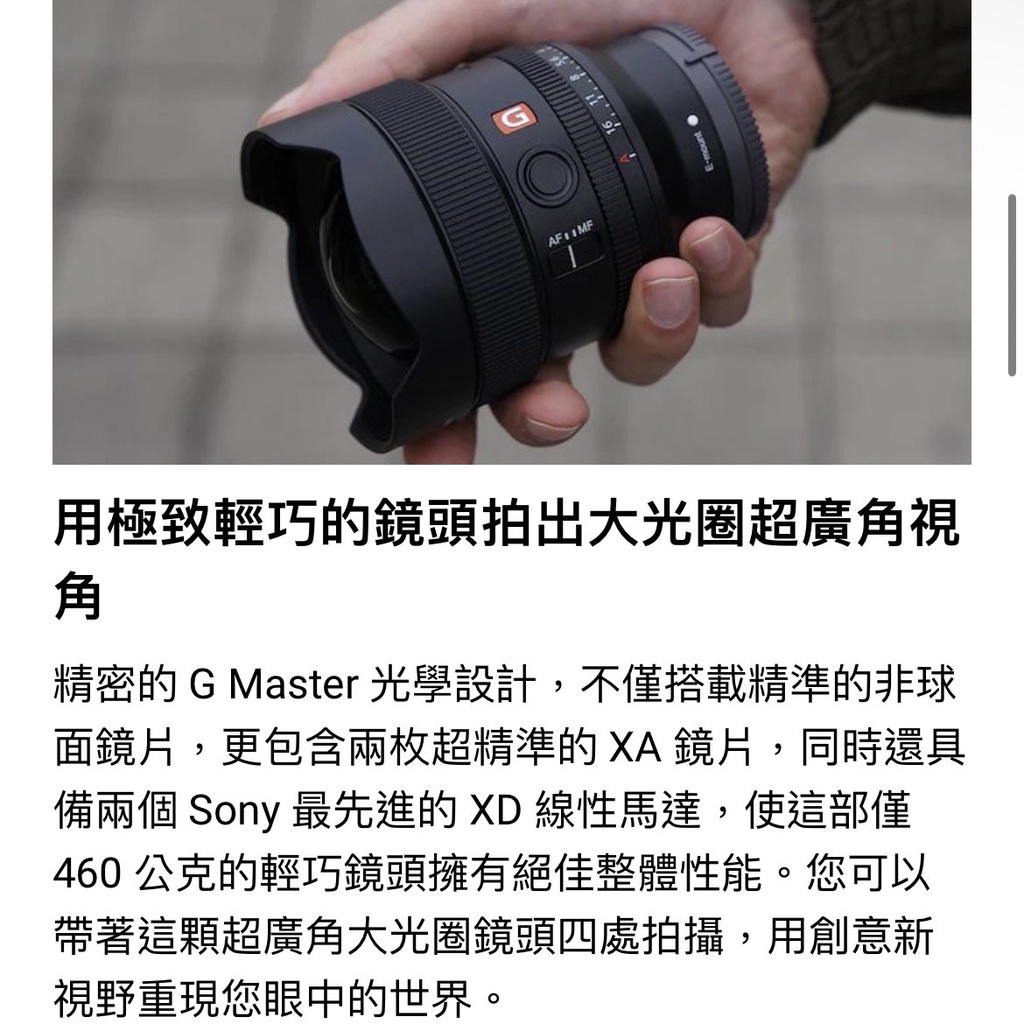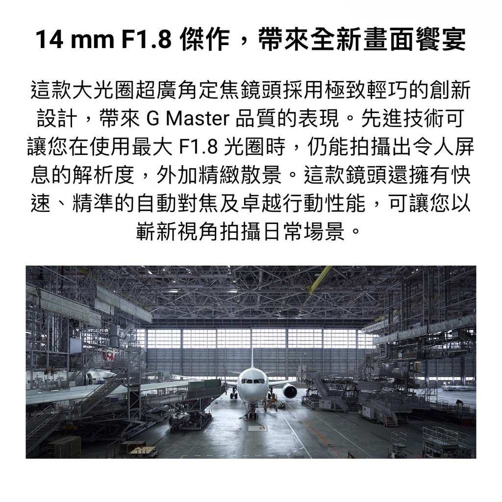 【SONY 索尼】SEL14F18GM FE 14mm f/1.8 GM 廣角定焦鏡 (公司貨)【SONY 索尼】SEL14F18GM FE 14mm f/1.8 GM 廣角定焦鏡 (公司貨)Sony相機官方授權經銷商-富士通