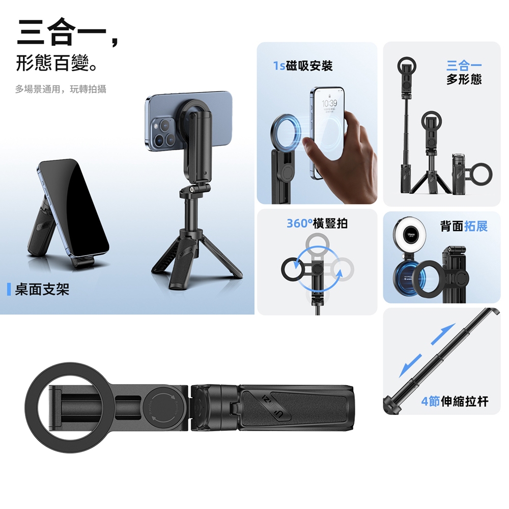Ulanzi JJ03磁吸手機快門手柄三腳架(不檔拍照鍵)JJ03Tripods, Monopods, & AccessoriesPhotoStyle