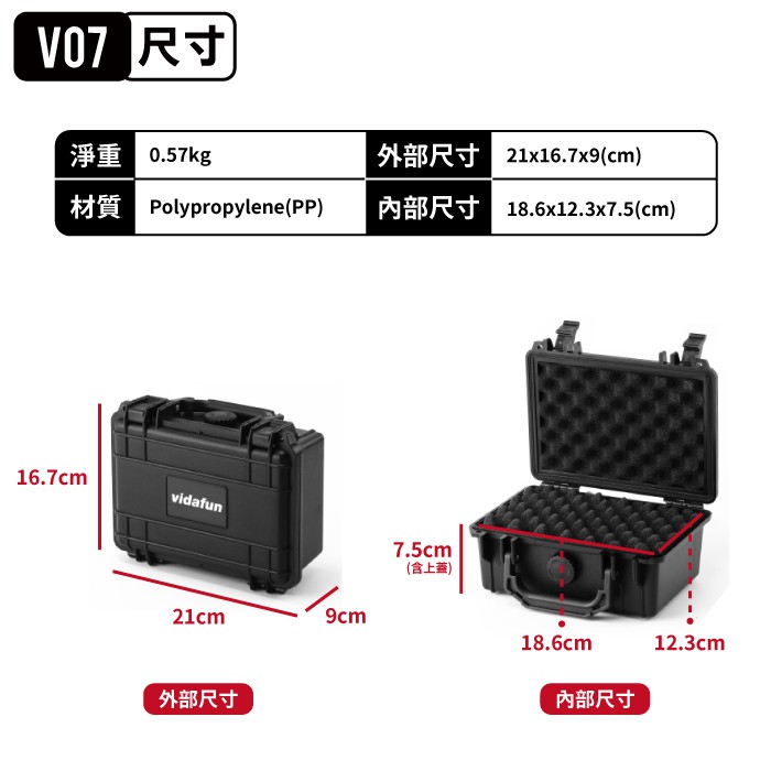 Vidafun V07 氣密箱 隨行防水氣密抗撞收納盒 軍綠/黃/黑色 防水 耐撞 公司貨 #V07軍綠色|黃黑色|黑色NIKON 相機 旗艦店