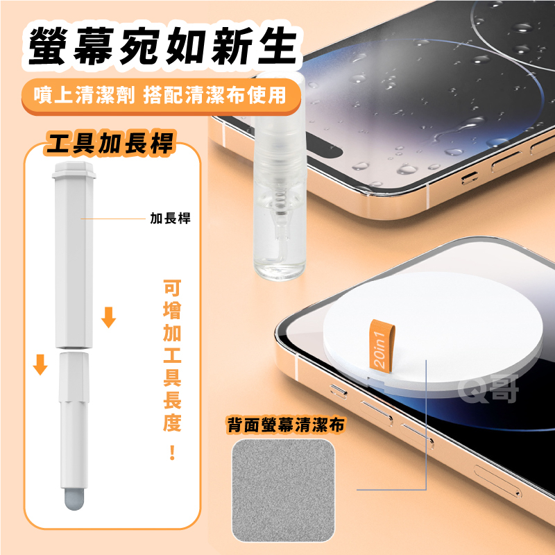 二十合一多功能清潔器 擦拭布 毛刷 耳機 相機【鍵盤】螢幕清潔 清潔筆 AirPods清潔器【清潔工具套裝】XU07白Cleaning KitQ哥 電玩旗艦商城|Switch2 PS5 遊戲片 Xbox ptcg寶可夢