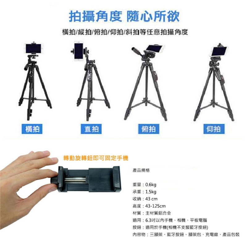 Yunteng 雲騰 VCT-5208 自拍腳架+三向雲台 藍芽腳架 攝影腳架 三腳架 攝影腳架 手機腳架 YT04VCT-5208 自拍腳架+三向雲台Tripods, Monopods, & AccessoriesQ哥 旗艦商城|最專業的保護貼手機配件
