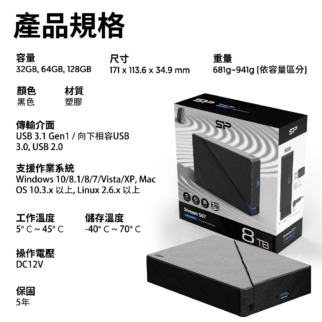 SP S07 3.5吋 外接式硬碟 3TB 4TB 6TB 8TB USB3.2 行動硬碟 HDD 廣穎3T|4T|6T|8THard DrivesSP廣穎電通 官方旗艦店