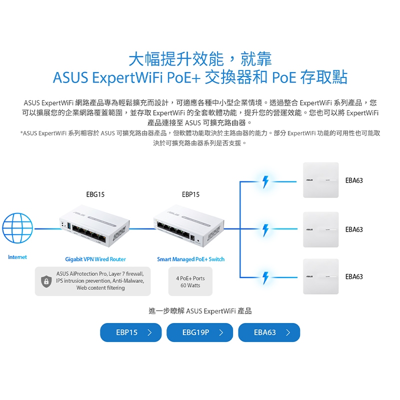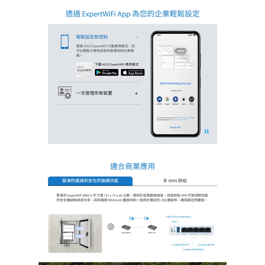 ASUS 華碩 ExpertWiFi EBG15 路由器 VLAN 增強安全性 分享器 Wifi分享器 網路交換器主商品Modems & Wireless RoutersROG 華碩授權店 | 電競周邊館
