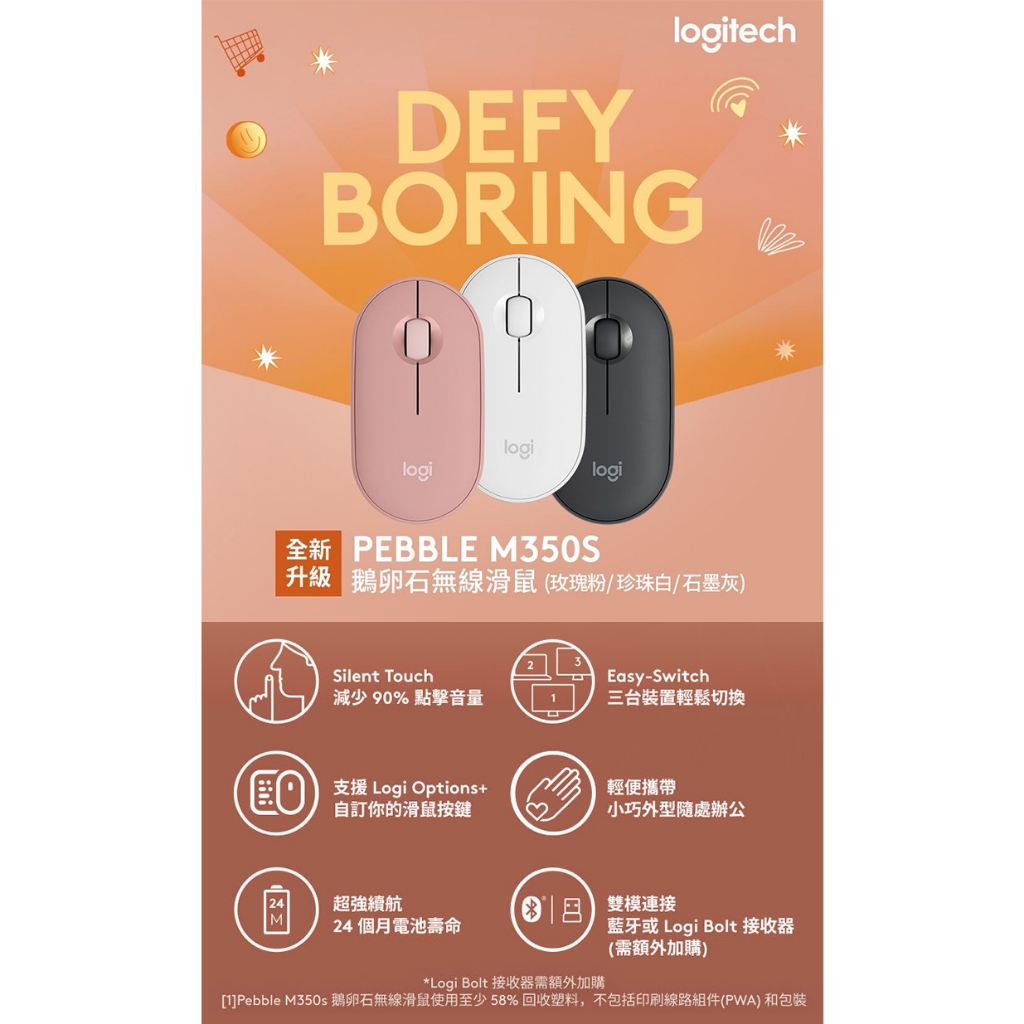 羅技 M350s 鵝卵石無線藍牙滑鼠 支援BOLT/藍牙連線【Sound Amazing】石墨灰|珍珠白|玫瑰粉MiceSound Amazing