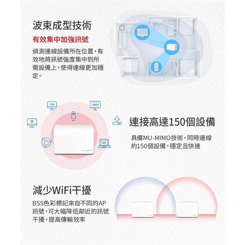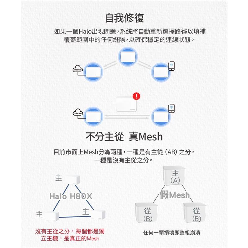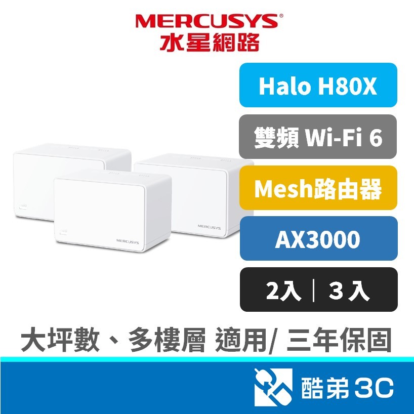 【Wi-Fi6】Mercusys 水星 Halo H80X AX3000 雙頻 WIFI6 分享器 Mesh網狀路由器一組 2入|一組 3入Modems & Wireless RoutersQD 酷弟3C