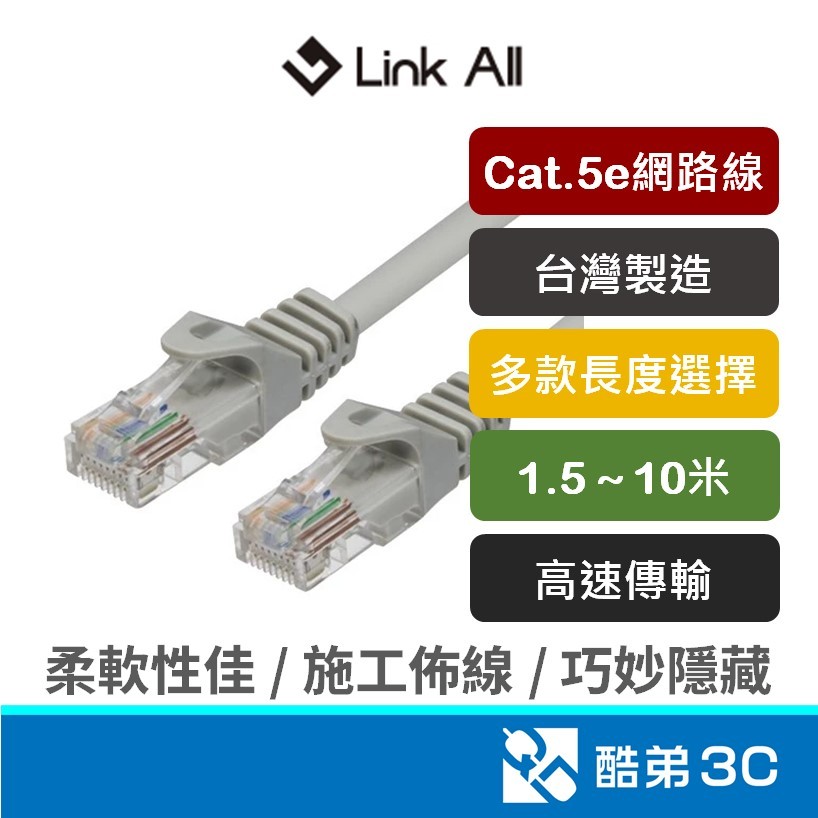 Link All CAT5e UTP 1.5米~5米 網路線 RJ45 電腦網路線 1.5m~5m (袋裝) 台灣現貨10米(約 1000 公分)|1.5米(約 150 公分)|3米(約 300 公分)|5米(約 500 公分)Modems & Wireless RoutersQD 酷弟3C