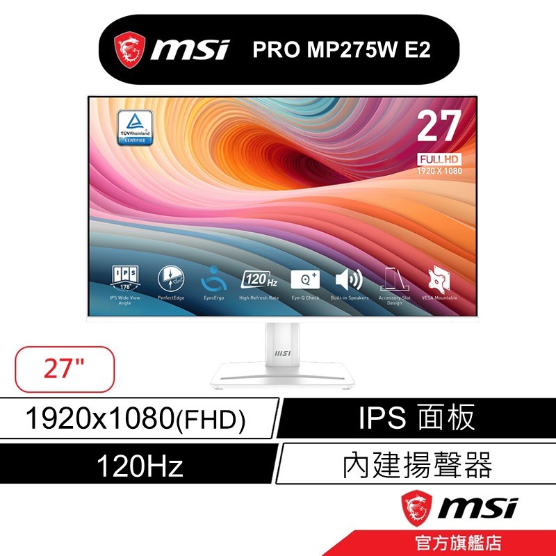 msi 微星 MSI PRO MP275W E2 27吋 平面螢幕 FHD/120Hz/內建喇叭/白色MP275W E2MSI微星品牌旗艦店