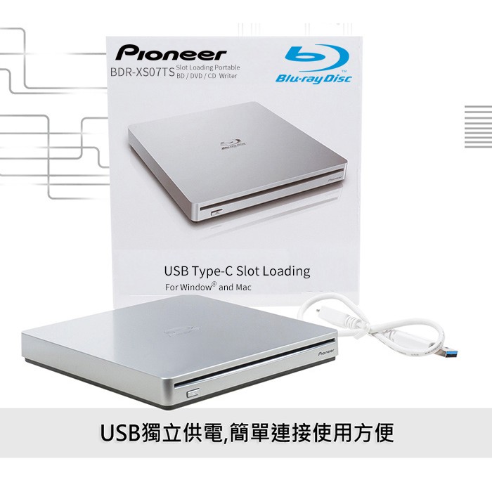 【Pioneer】BDR-XS07TS外接藍光燒錄器 + DVD空白光碟50 Cake*1入 + BD單片*2入福利品Compact DiscsPioneer DJ 先鋒行動館