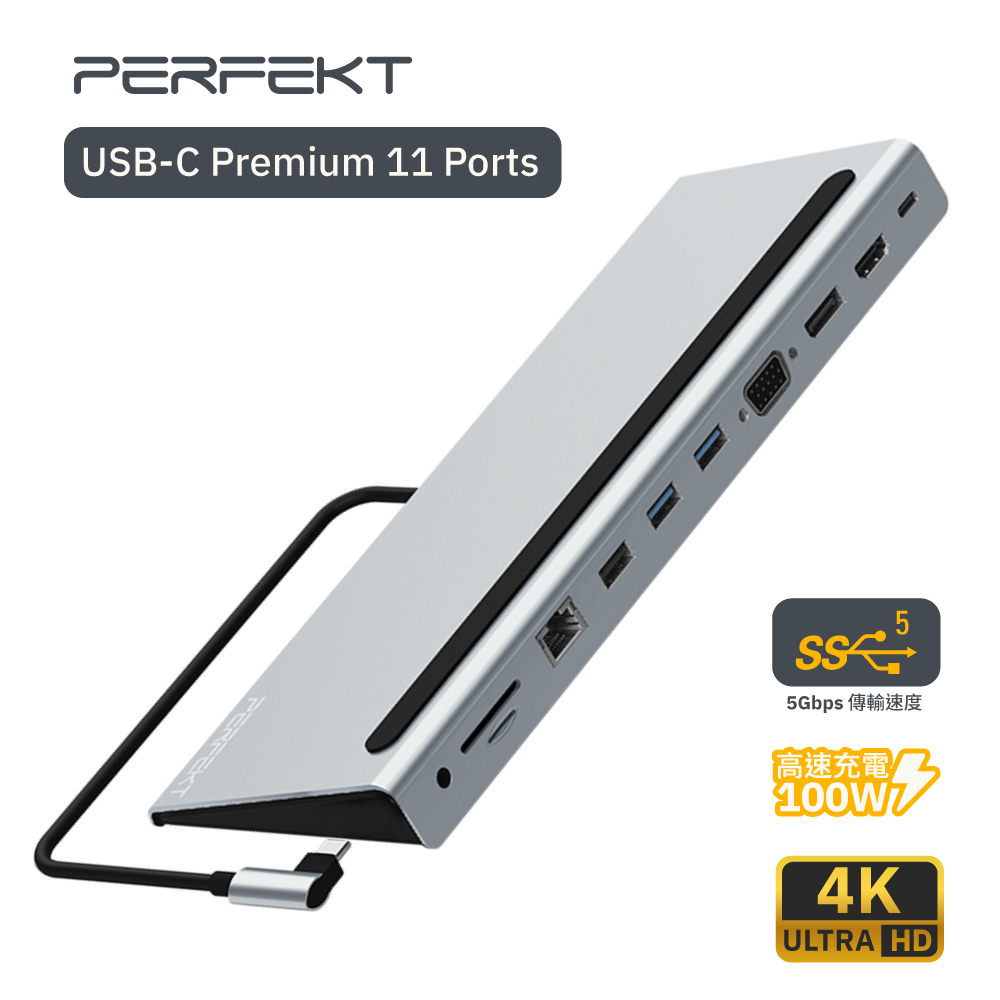 PERFEKT USB Type C 11合1 集線器 Hub PD VGA 網口 HDMI DP 多功能筆電擴充底座PERFEKT USB Type C 11合1 集線器 Hub PD VGA 網口 HDMI DP 多功能筆電擴充底座OthersPerfekt 官方旗艦店