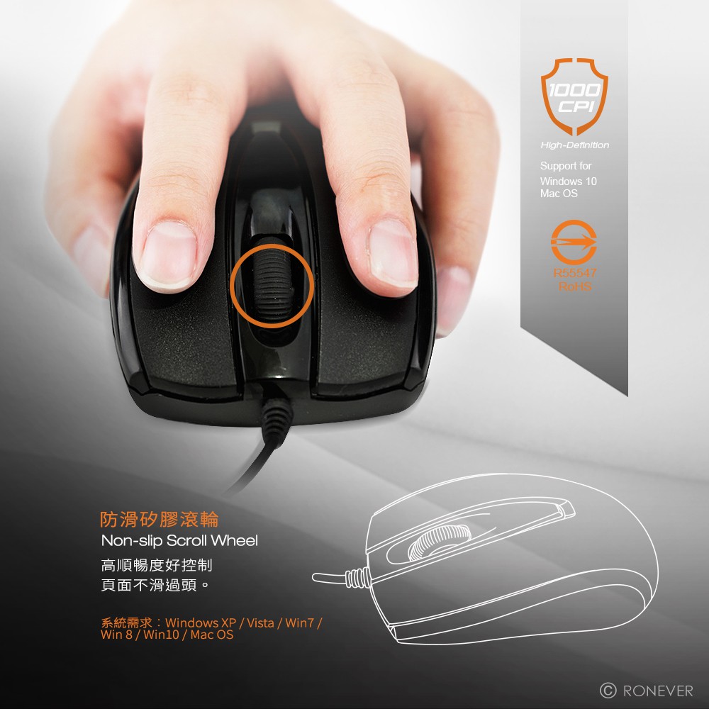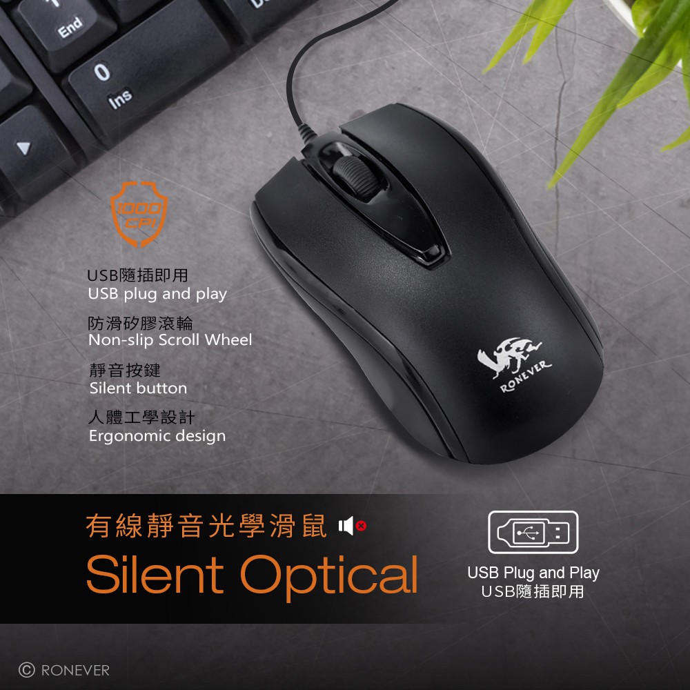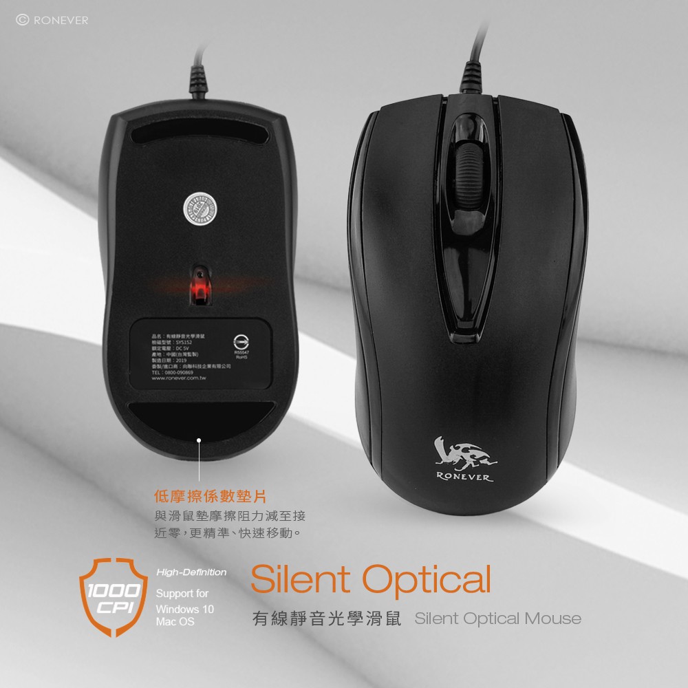 RONEVER SYS152 / 有線靜音光學滑鼠SYS152MiceRONEVER 官方品牌館