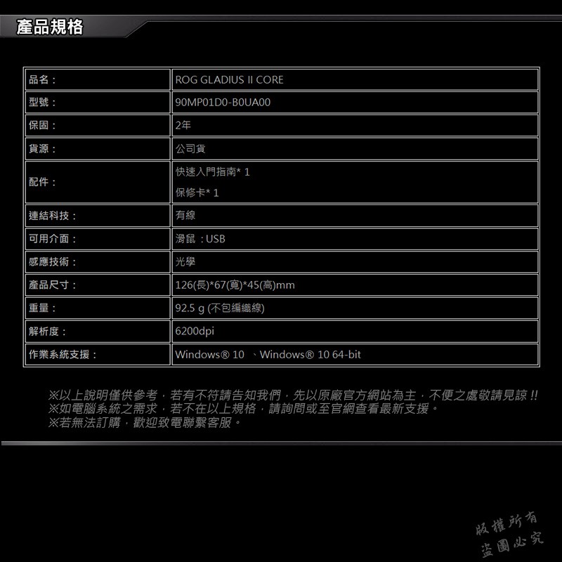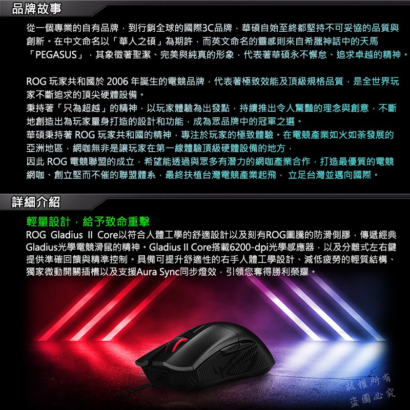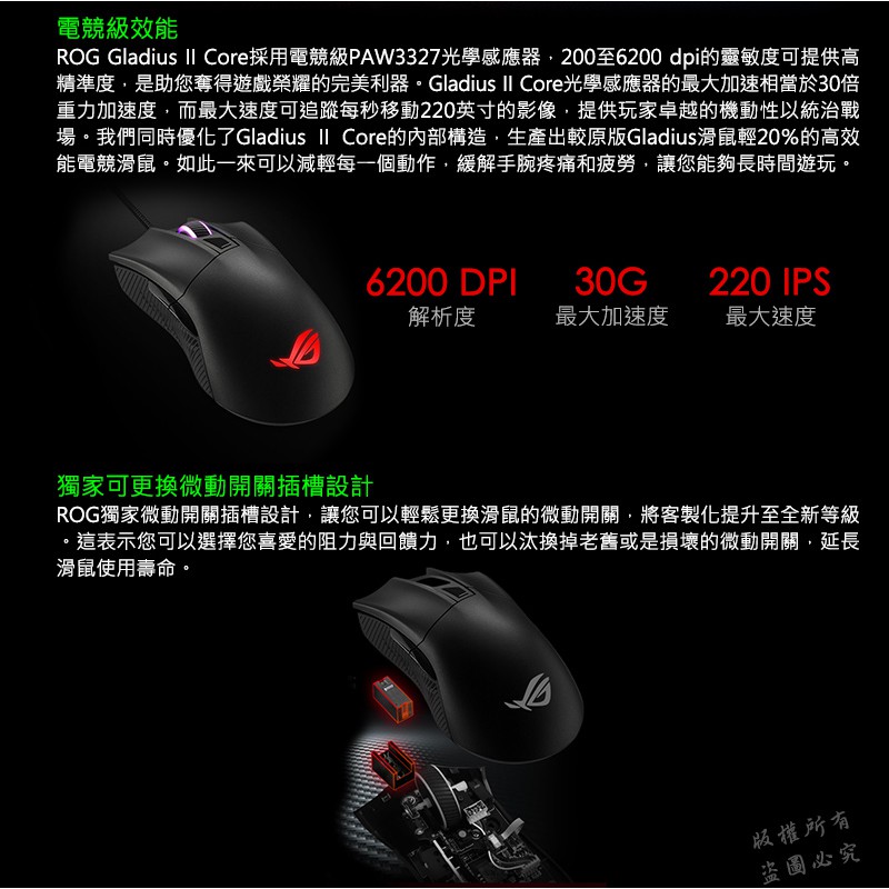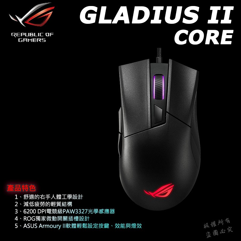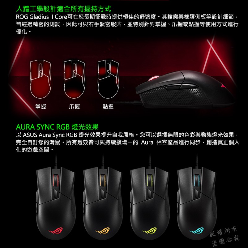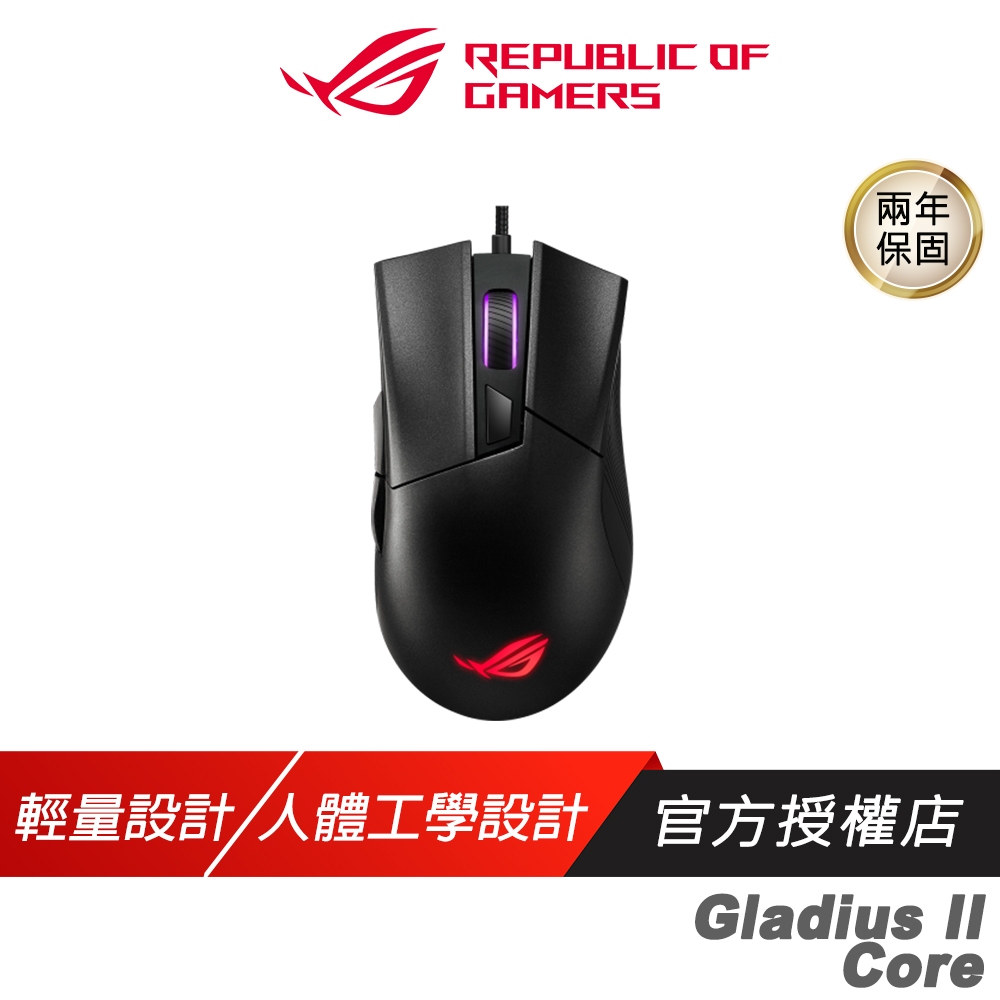 ROG GLADIUS II CORE 有線電競滑鼠 人體工學 光學感應器 遊戲滑鼠 有線滑鼠 電競滑鼠 電腦滑鼠主商品|♻福利品【已拆封測試】MiceROG 華碩授權店 | 電競周邊館