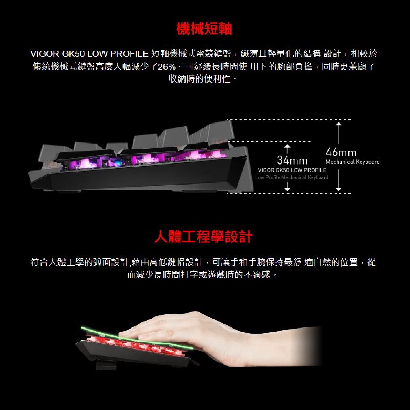 MSI 微星 VIGOR GK50 LOW PROFILE 短軸鍵盤【電競鍵盤】機械式 機械鍵盤 電腦鍵盤 MSI15【套組】GK50+WR01 鍵盤手托|GK50 LOW PROFILE TCKeyboardsQ哥 電玩旗艦商城|Switch2 PS5 遊戲片 Xbox ptcg寶可夢