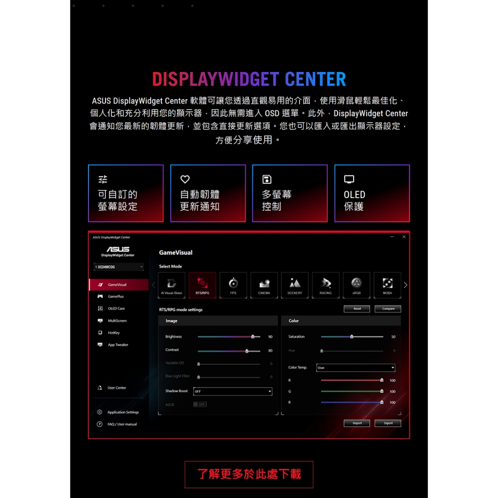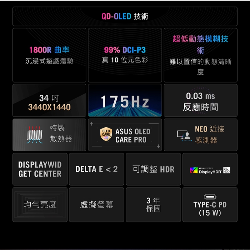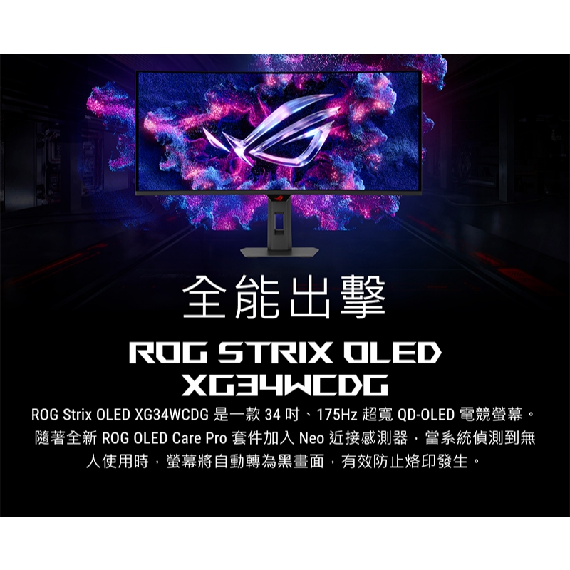 ROG Strix OLED XG34WCDG 電競螢幕 34吋 175Hz 2K 0.03ms 電腦螢幕 遊戲螢幕主商品ROG 華碩授權店 | 電競周邊館