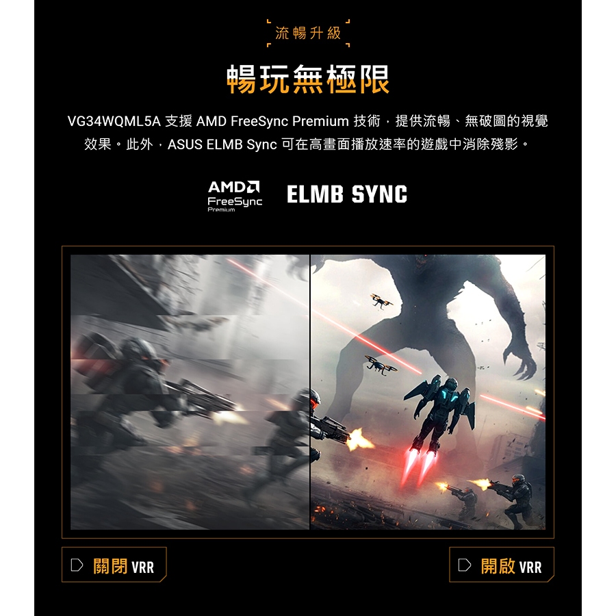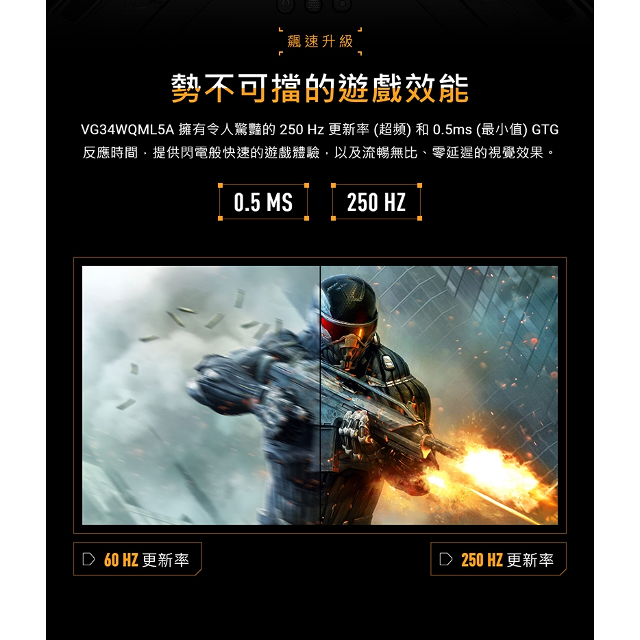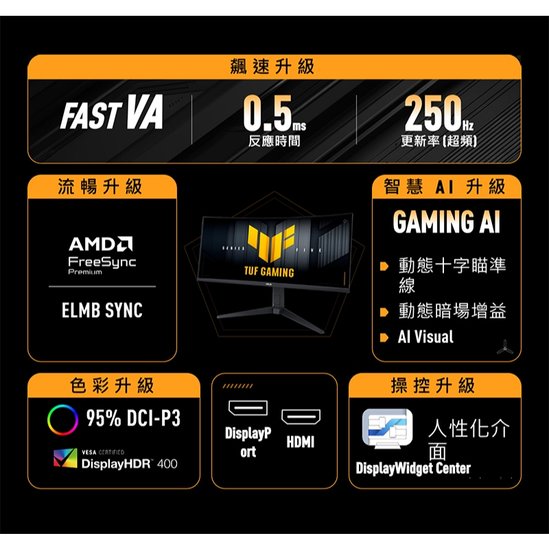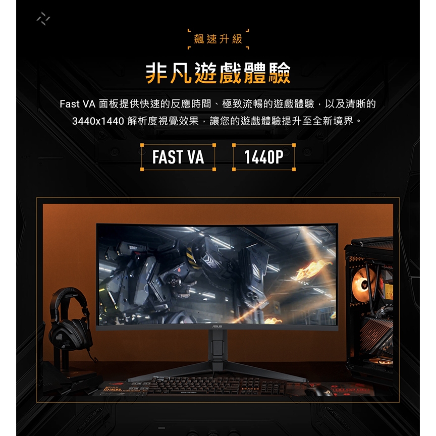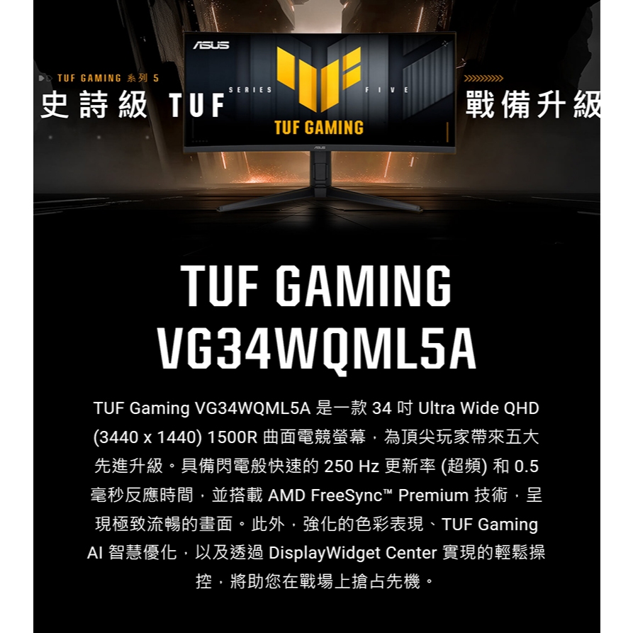 ASUS 華碩 TUF Gaming VG34WQML5A 曲面電競螢幕 34吋 250Hz 2K 0.5ms 內建喇叭主商品ROG 華碩授權店 | 電競周邊館