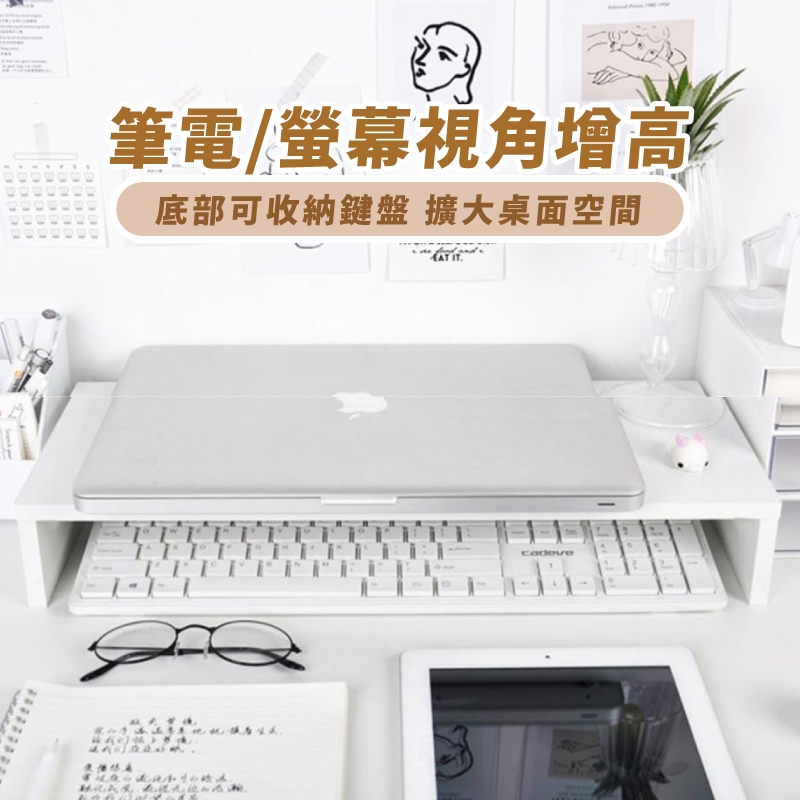 木質螢幕加高架 桌上型 支架 筆電支架 桌面收納 螢幕架 電腦架 置物架 收納架 螢幕增高 增高架 鍵盤收納 KY008白|胡桃木Laptop Stands & Foldable Laptop DesksQ哥 3C資訊通訊生活旗艦館