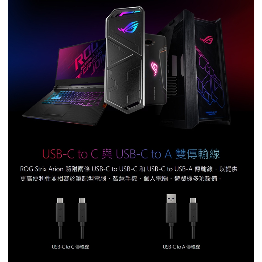 ROG STRIX ARION M.2 NVMe SSD 外接盒 優異散熱 雙USB傳輸線 免工具安裝 硬碟外接盒Strix Arion|Strix Arion Lite|Strix Arion 白色Hard DrivesROG 華碩授權店 | 電競周邊館