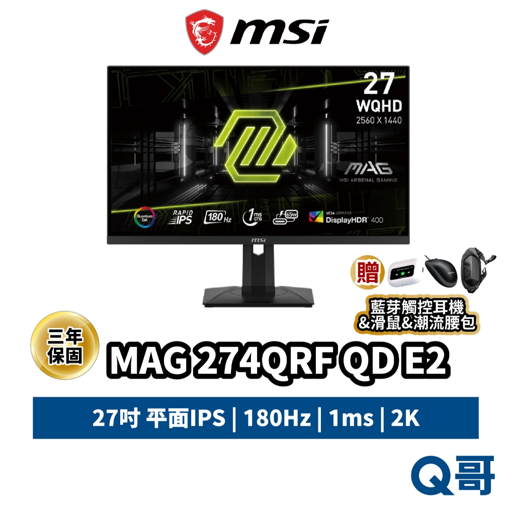 MSI 微星 MAG 274QRF QD E2 27吋 電腦螢幕 180Hz IPS 平面 電競 螢幕 MSI630MAG 274QRF+禮包1|MAG 274QRF+禮包2|MAG 274QRF+禮包3|MAG 274QRF+禮包4|MAG 274QRF+禮包5|【福利品】|限時促銷|MAG 274QRF|MAG 274QRF (單主商品)Q哥 3C資訊通訊生活旗艦館