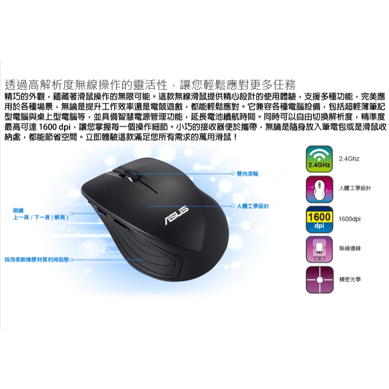 ASUS 華碩 WT465 無線滑鼠 雙向滾輪 人體工學設計 橡膠材質拇指墊 長效續航 電競滑鼠 華碩滑鼠 滑鼠黑色,主商品|黑色,主商品+黑色素面鼠墊|白色,主商品|白色,主商品+黑色素面鼠墊MiceROG 華碩授權店 | 電競周邊館