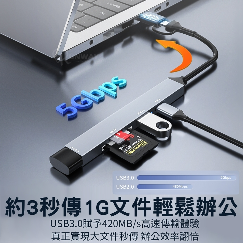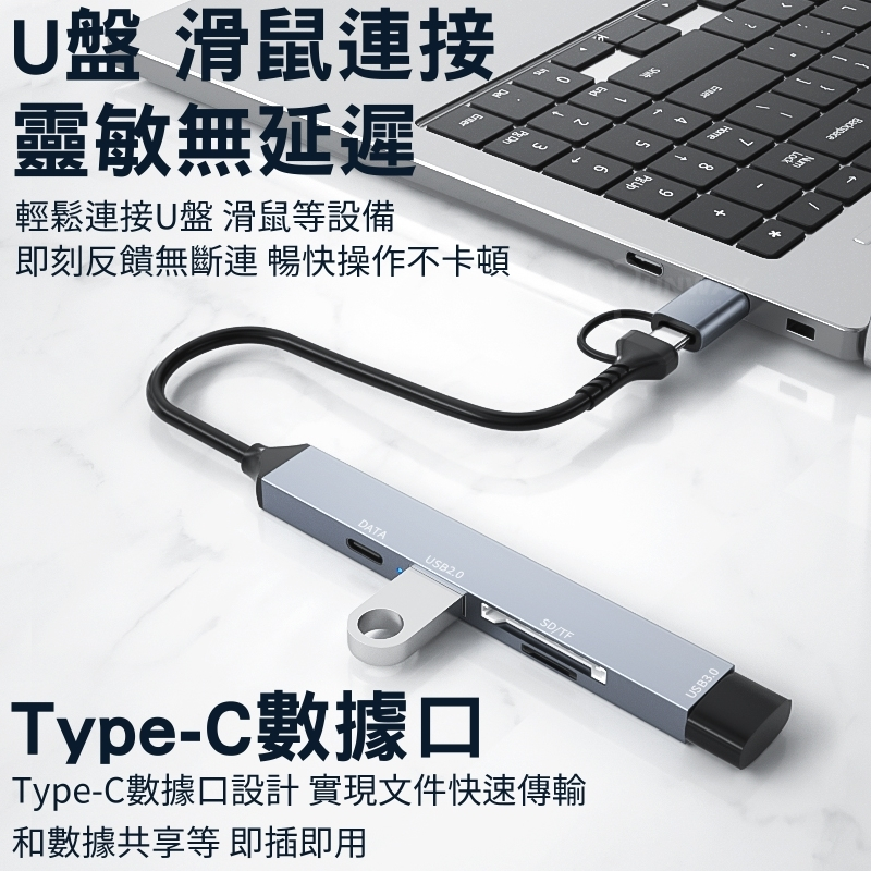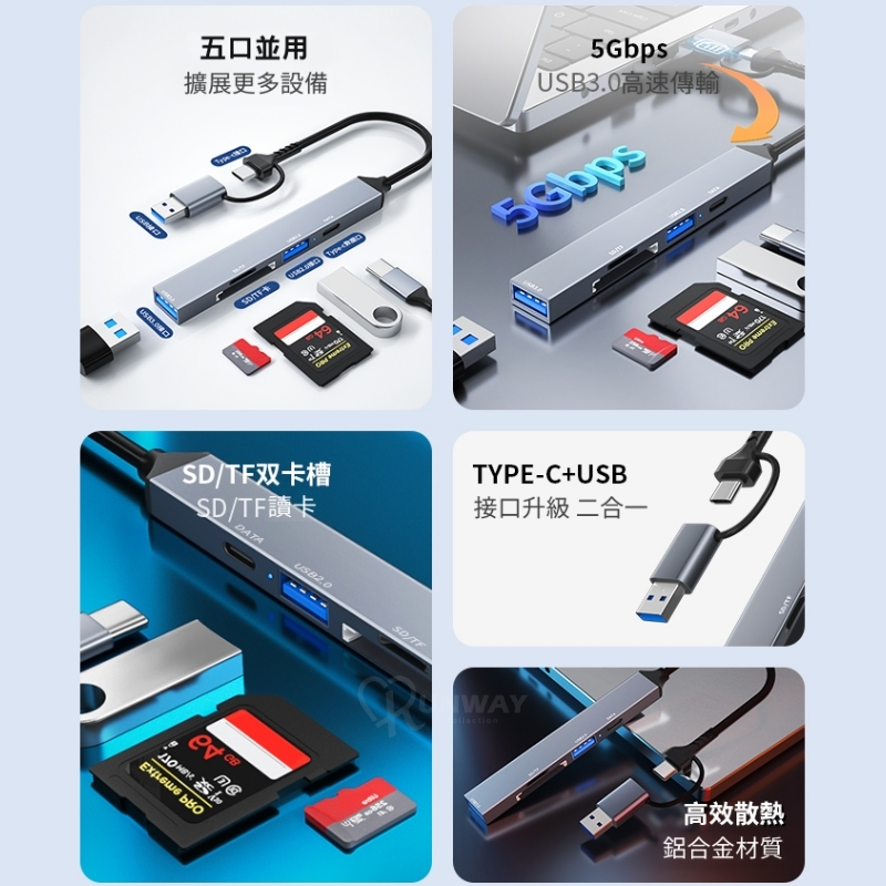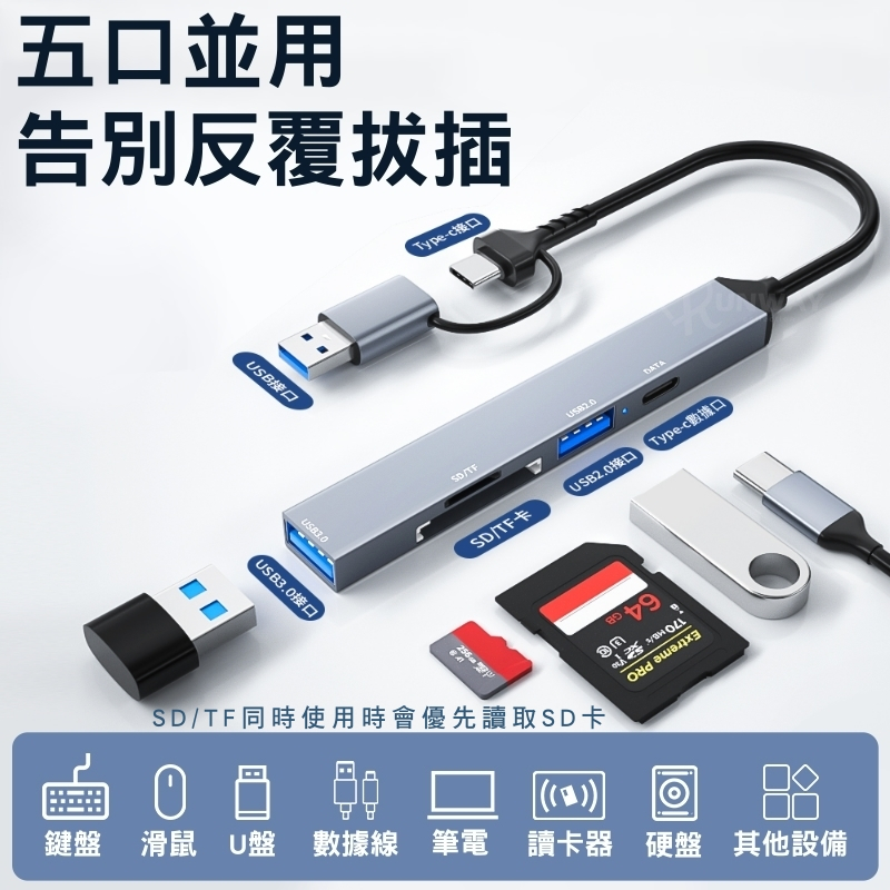 五合一 HUB USB3.0 Type-C 雙接口 擴展器 高速 集線器 SD TF卡 讀卡器 電腦 平板 手機