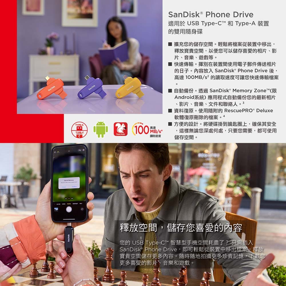 SanDisk Phone Drive USB Type-C 雙用隨身碟 DC6 512GB (公司貨)黑色|紫色|橘色|黃色Flash Drives & OTGSanDisk官方旗艦館