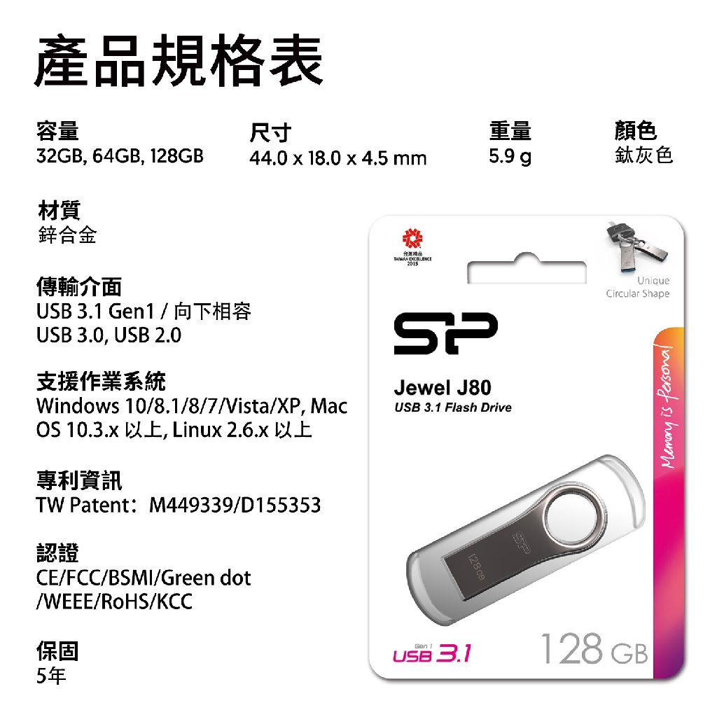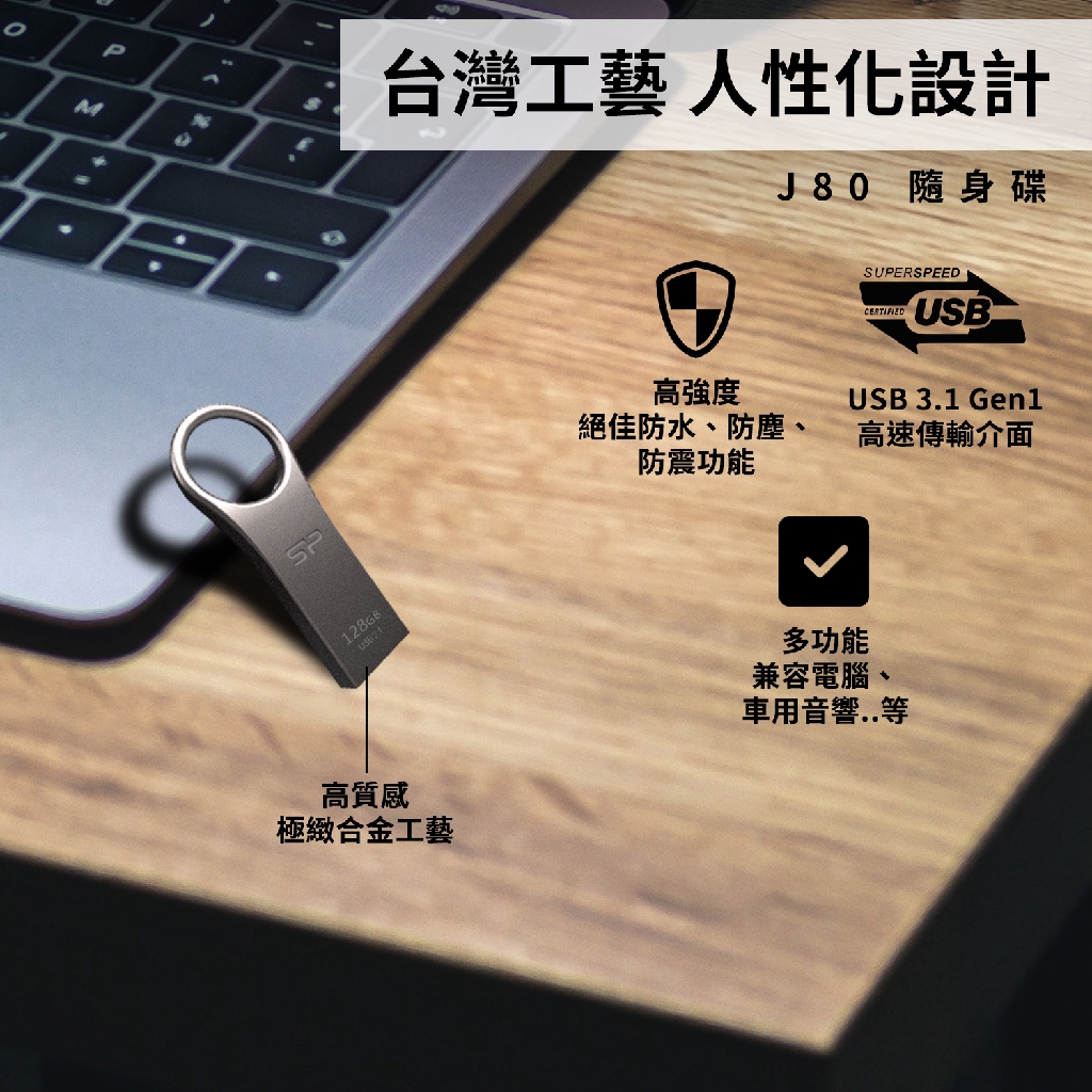 SP J80 32GB 64GB 128GB USB 3.2 Gen 1 隨身碟 防水 防震 鋅合金金屬 廣穎32GB (防水防塵)|64GB (防水防塵)|128GB (防水防塵)Flash Drives & OTGSP廣穎電通 官方旗艦店