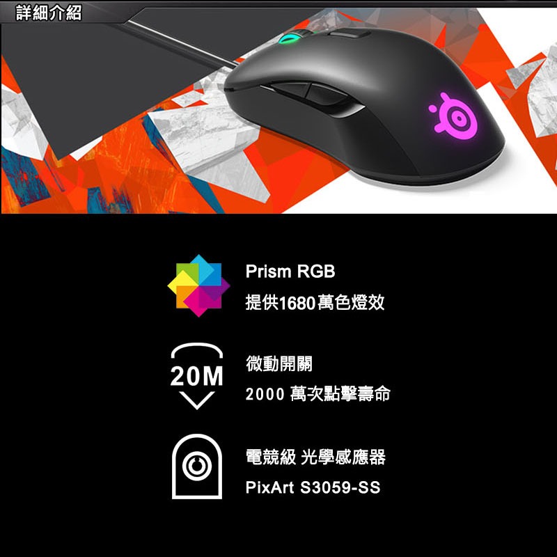 SteelSeries 賽睿 Prime 有線電競滑鼠 輕量設計 光學感應器 電競滑鼠 有線滑鼠 電腦滑鼠 遊戲滑鼠主商品|主商品+素面鼠墊MiceSteelSeries賽睿官方旗艦店