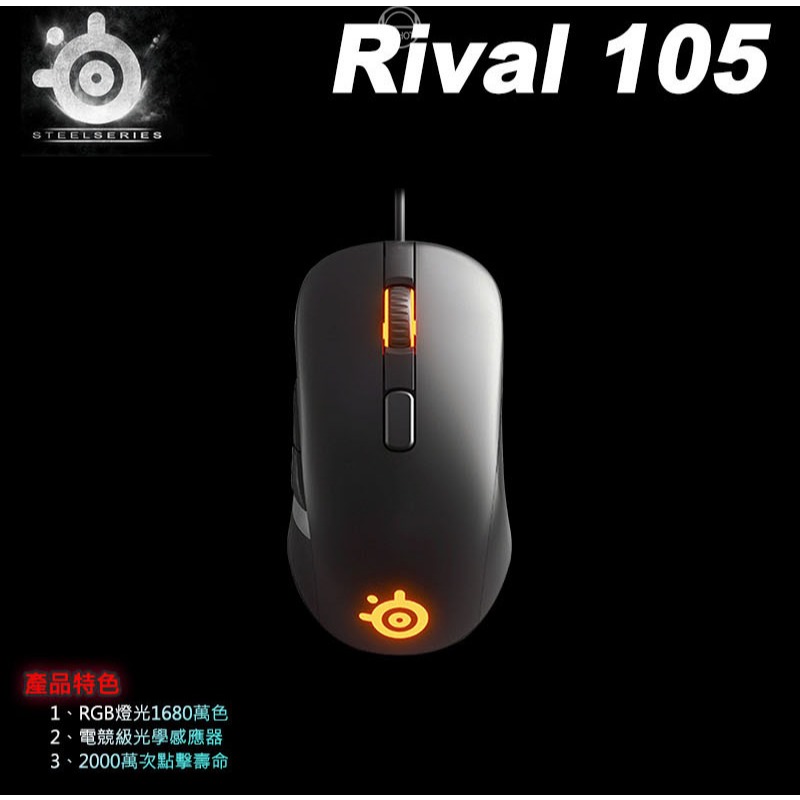 SteelSeries 賽睿 RIVAL 105 有線電競滑鼠 RGB 電腦滑鼠 光學滑鼠 遊戲滑鼠 電競滑鼠♻福利品【已拆封測試】|主商品|主商品+滑鼠墊MiceSteelSeries賽睿官方旗艦店