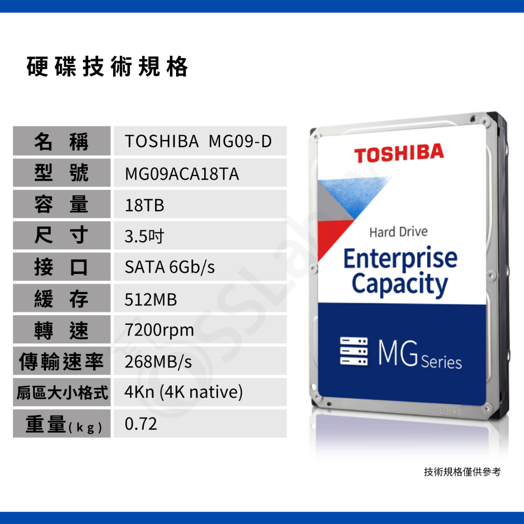 TOSHIBA 18TB SATA 全新企業級硬碟 MG09ACP18TE/MG09ACA18TA 台北24H出貨通電時間100天-110天『保固14天』|通電時間<24天『保固30天』|全新品『保固一年』Hard DrivesOSSLab 弘昌電子有限公司