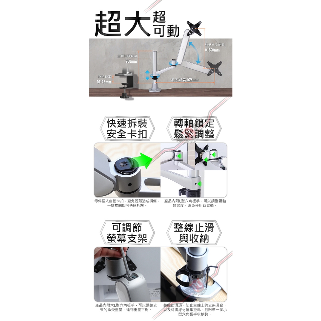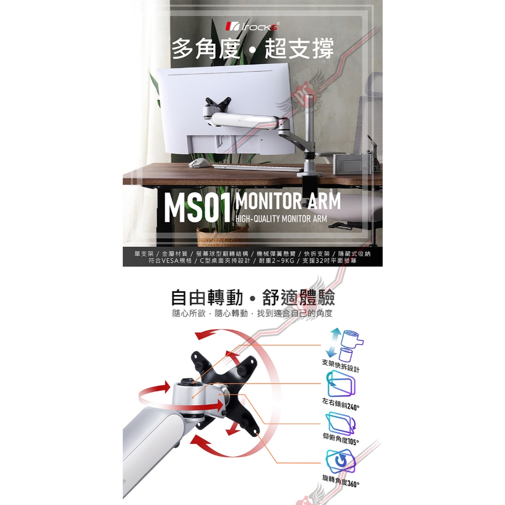 艾芮克 I-ROCKS MS01 單臂螢幕支架 PCPARTY銀色底座OthersPC PARTY 電競週邊專家