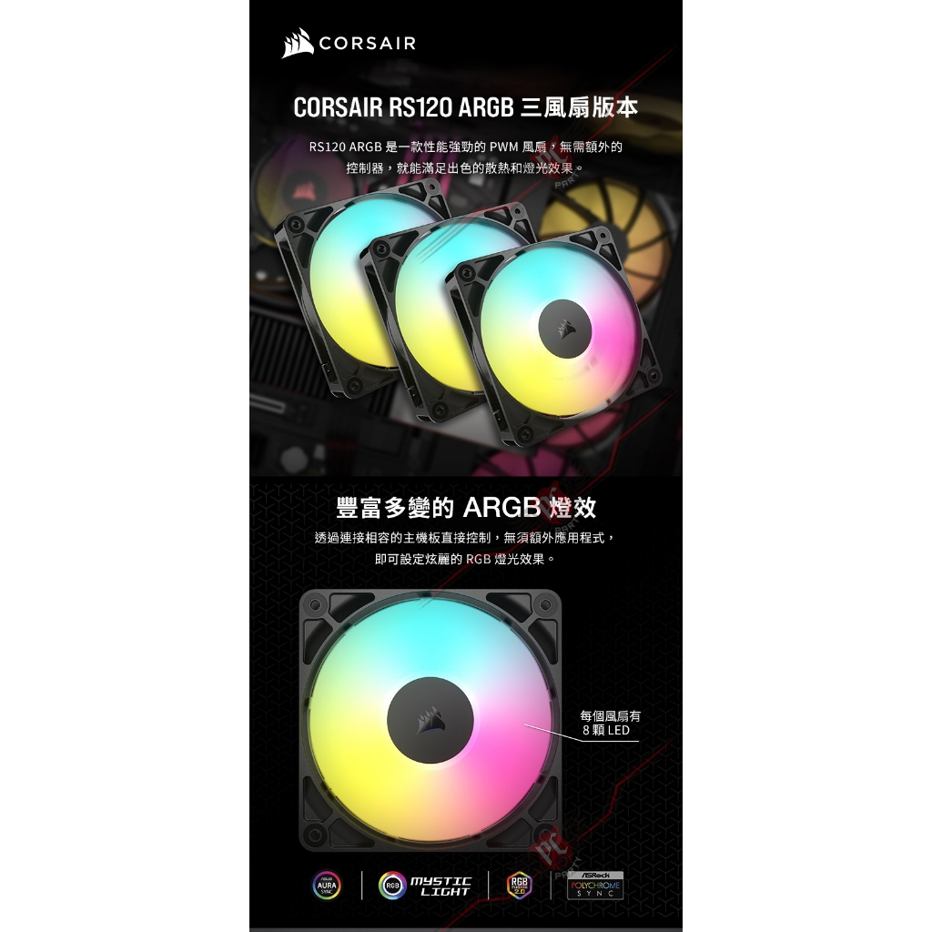 海盜船Corsair RS120 ARGB 機殼風扇 PC PARTY黑色單顆|白色單顆Fans & HeatsinksPC PARTY 電競週邊專家