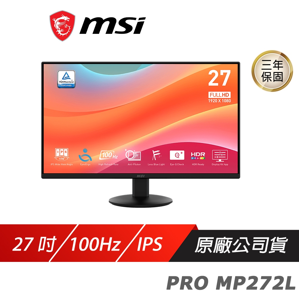 MSI 微星 PRO MP272L 電腦螢幕 27吋 IPS 100Hz 1ms FHD 商用螢幕 液晶螢幕 電競螢幕主商品|⏰限時促銷PCHOT 線上電競 | 3C旗艦店