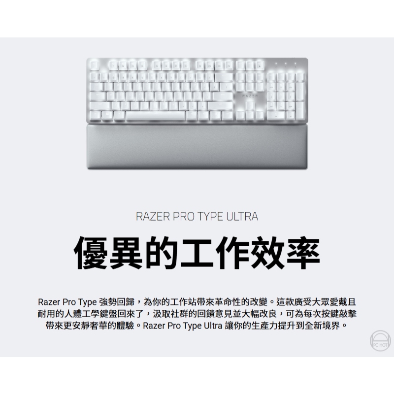 Razer 雷蛇 Pro Type Ultra 無線鍵盤 電競鍵盤 白色 英文 中文 有線 藍芽 2.4G 機械式黃軸中文版,主商品|英文版,主商品|英文版,⏰限時促銷|中文版,⏰限時促銷KeyboardsPCHOT 線上電競 | 3C旗艦店