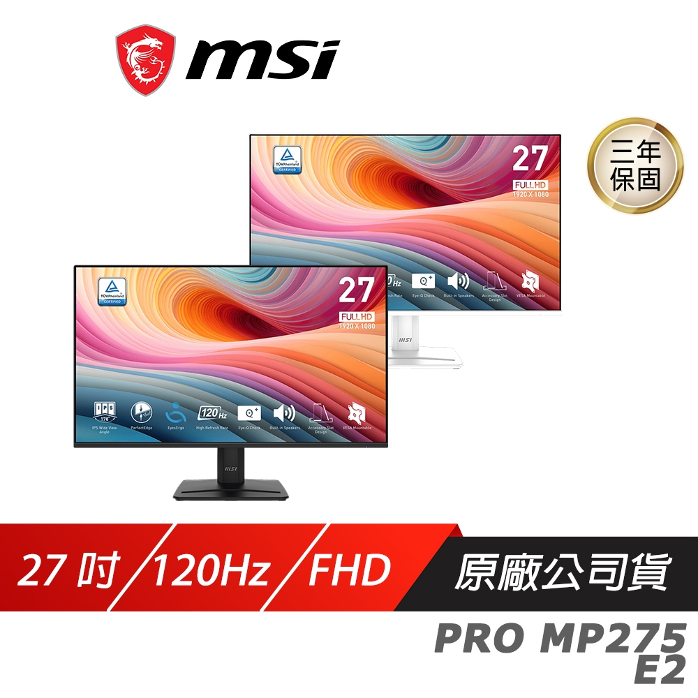 MSI 微星 PRO MP275 E2 電腦螢幕 27吋 IPS 120Hz 1ms FHD 內建喇叭 商用螢幕黑色,主商品|黑色,⏰限時促銷|白色,主商品|白色,⏰限時促銷|黑色,♻福利品【拆封測試】|白色,♻福利品【拆封測試】PCHOT 線上電競 | 3C旗艦店