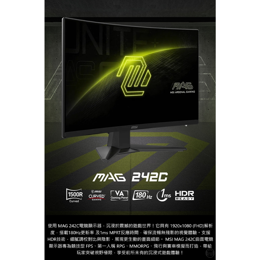 MSI 微星 MAG 242C 曲面電競螢幕 24吋 180Hz VA FHD 1ms HDR 電腦螢幕 遊戲螢幕主商品|⏰限時促銷PCHOT 線上電競 | 3C旗艦店