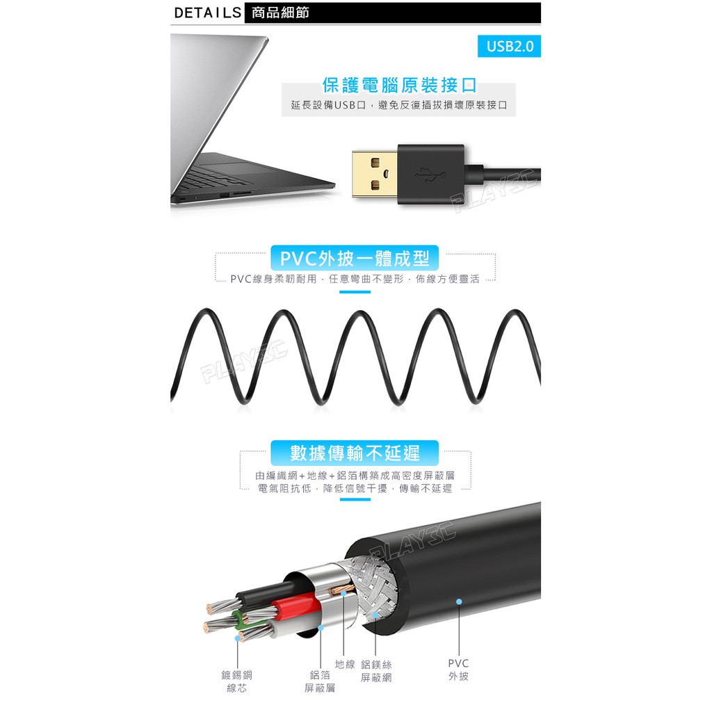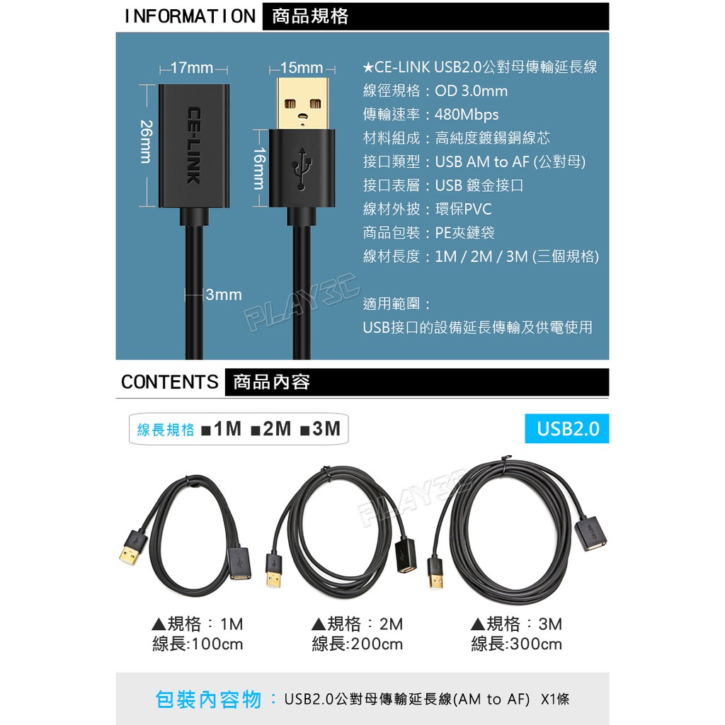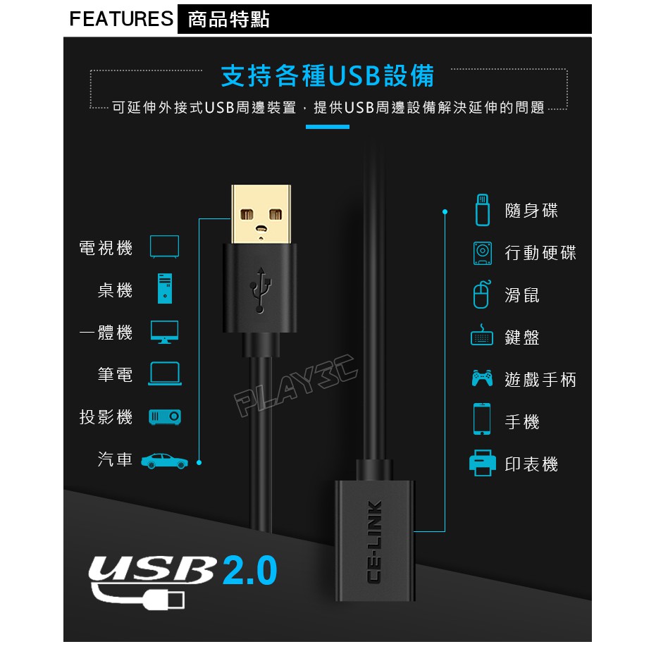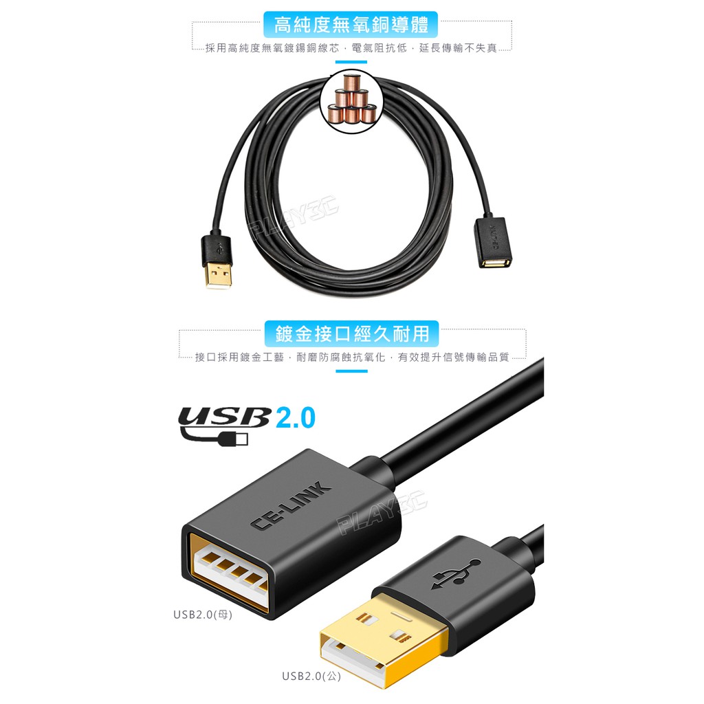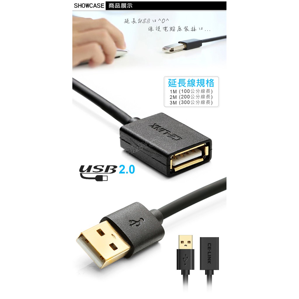 CE-LINK USB2.0 2米/3米 USB延長線 公對母 AMtoAF線2米|3米Network Cables & ConnectorsPLAY3C創意生活館