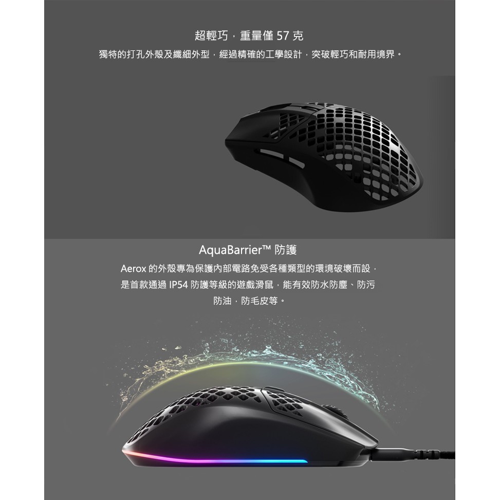 Steelseries 賽睿 Aerox 3 電競滑鼠 輕量設計 防水防塵 光學滑鼠 有線滑鼠 遊戲滑鼠 電競滑鼠黑色,⏰限時促銷|白色,⏰限時促銷|黑色,主商品|白色,主商品|白色,主商品+送素面鼠墊|黑色,主商品+送素面鼠墊MicePCHOT 線上電競 | 3C旗艦店