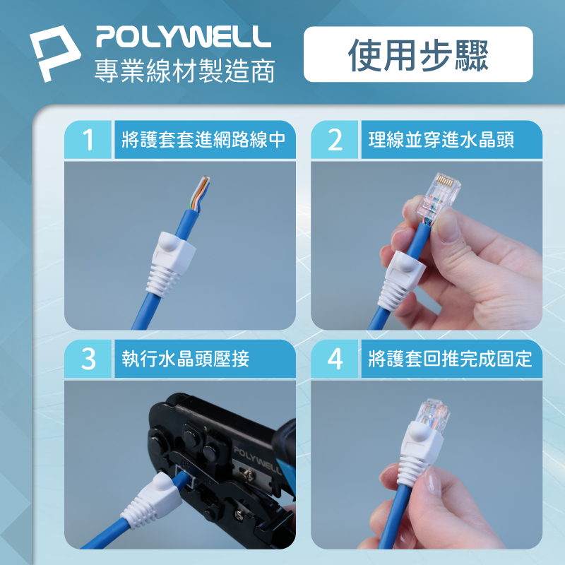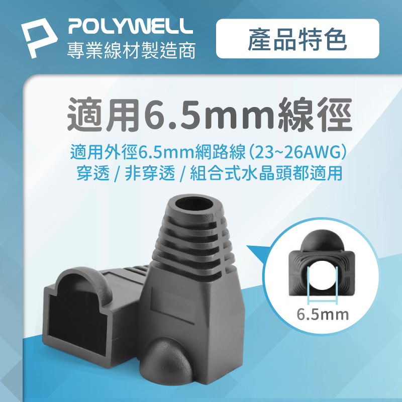 POLYWELL RJ45水晶頭護套 防折彎 6.5mm線徑適用 網路線保護套 10入 寶利威爾 台灣現貨黑色 /10入|灰色 /10入|白色 /10入|藍色 /10入|黃色 /10入|透明 /10入Network Cables & ConnectorsPOLYWELL寶利威爾官方旗艦店