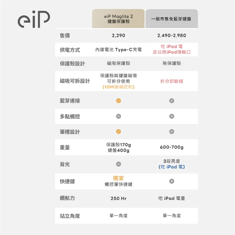 eiP Maglite 2 輕巧藍芽鍵盤 適用 iPad Pro Air 11 7 6 M3 M4 保護殼 EIP002