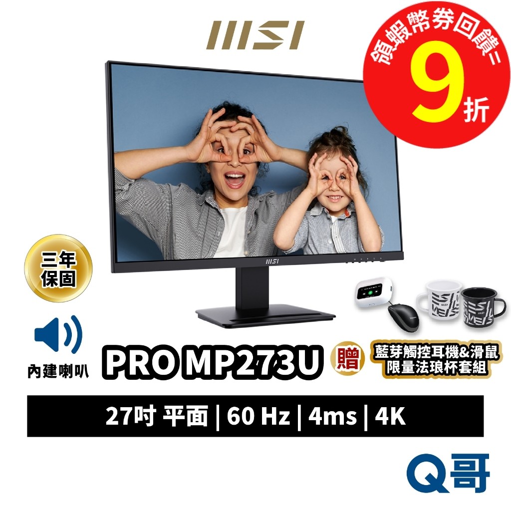 MSI 微星 PRO MP273U 27吋 4K 電腦螢幕 IPS 螢幕 護眼 4ms 60Hz 內建喇叭 MSI818PRO MP273U 福利品|PRO MP273U + 禮包5|PRO MP273U + 禮包3|PRO MP273U + 禮包4|PRO MP273U + 禮包1|PRO MP273U + 禮包2|PRO MP273U(單主商品)|(提醒用❌) 使用蝦幣券等於9折|限時促銷|PRO MP273UQ哥 電玩旗艦商城|Switch2 PS5 遊戲片 Xbox ptcg寶可夢
