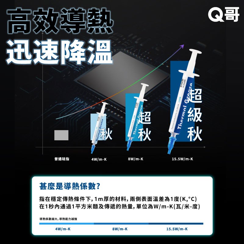 Q哥 秋 散熱膏 導熱係數 4W/mK 導熱膏 CPU 導熱硅脂 顯卡 風扇 中階 散熱矽脂 顯示卡 刮板 Z001秋 散熱膏 4W/m-KThermal PasteQ哥 3C資訊通訊生活旗艦館