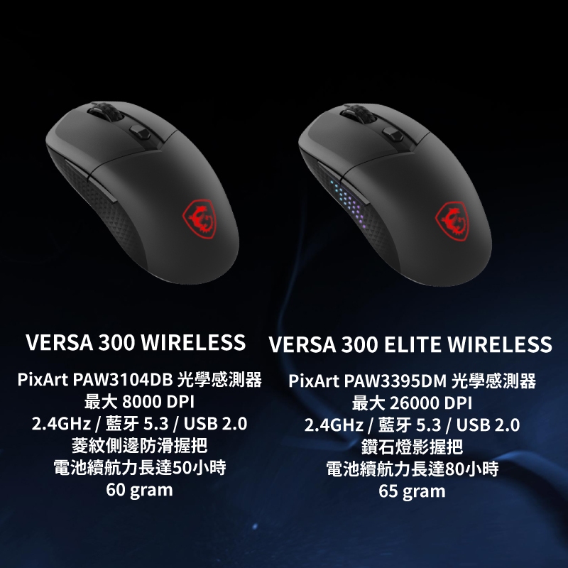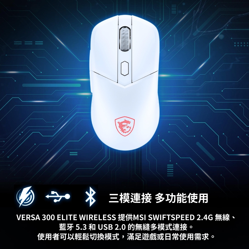 MSI 微星 VERSA 300 ELITE WIRELESS 無線 三模 26000 DPI 電競 滑鼠 MSI896黑|白MiceQ哥 3C資訊通訊生活旗艦館
