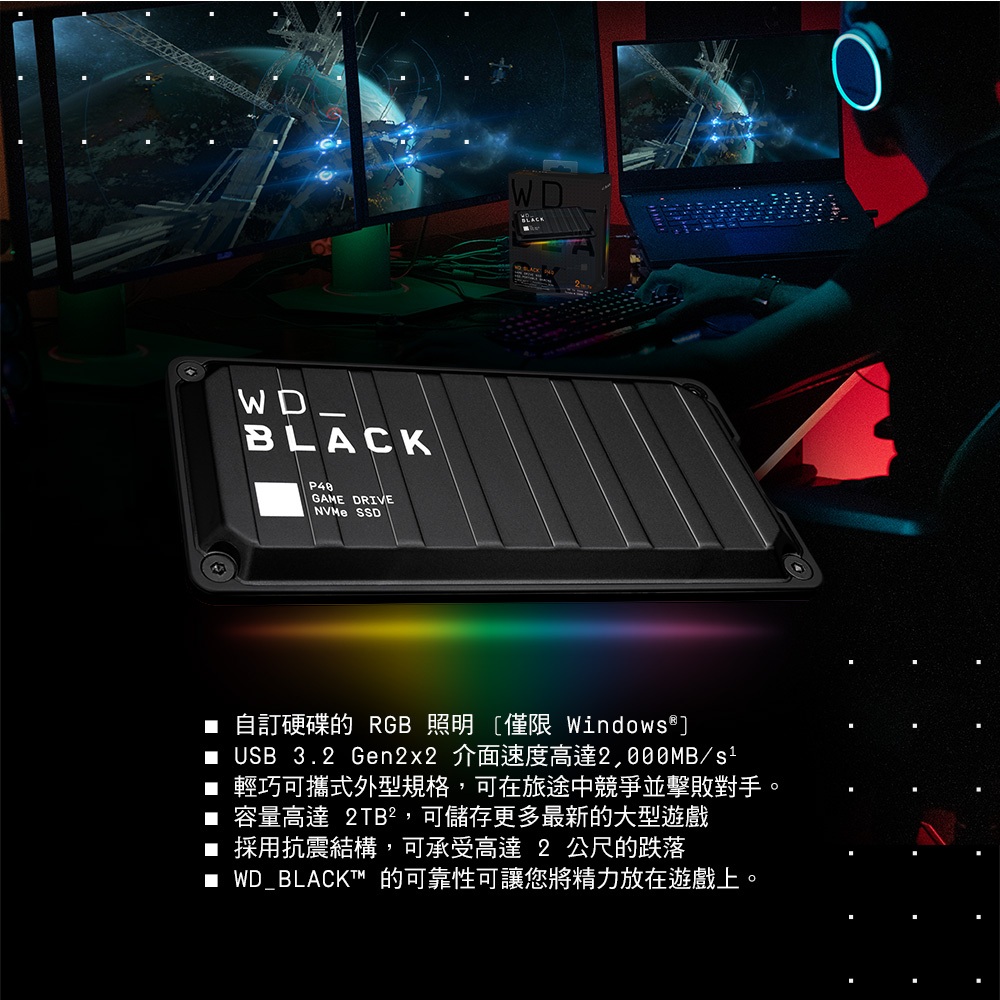 WD BLACK P40 Game Drive 2TB 外接式固態硬碟SSD(公司貨)WD BLACK P40 Game Drive 2TB 外接式固態硬碟SSD(公司貨)SSDSanDisk官方旗艦館
