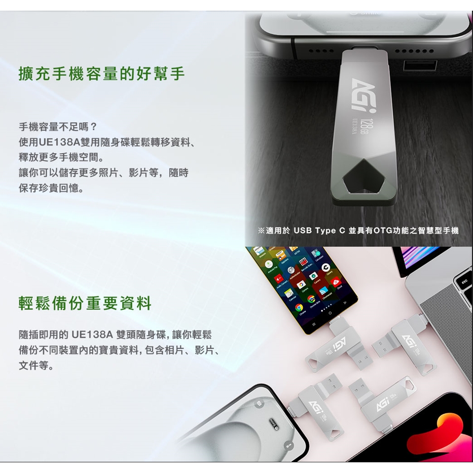 AGI 亞奇雷 UE138A USB3.2 Type-C雙用隨身碟-台灣現貨免運3年保固UE138A 雙用隨身碟 -64G-現貨|UE138A雙用隨身碟 -128G-現貨|UE138A 雙用隨身碟 -256G現貨Flash Drives & OTGMR.COM 生活與你同在-歡迎禮贈品及批發團購洽談