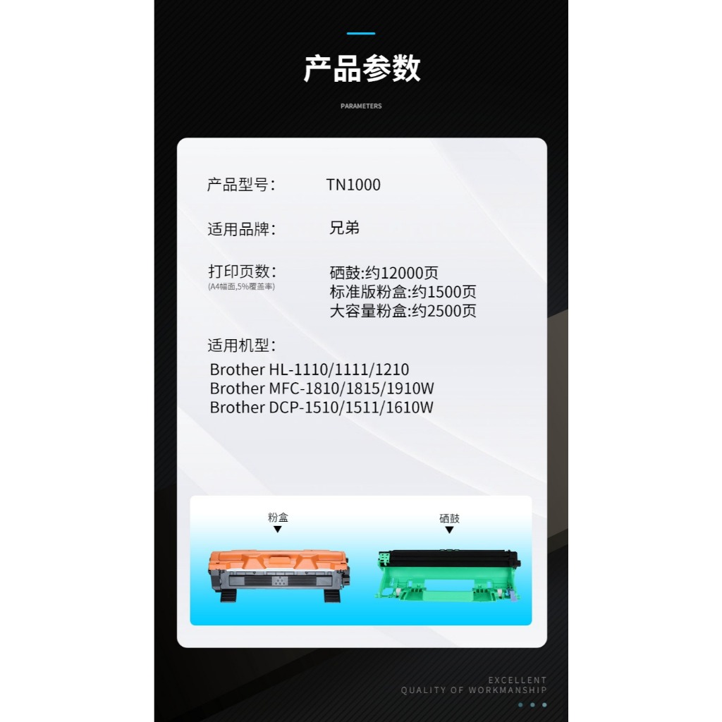 適用兄弟BROTHER TN1000粉盒 MFC-1810硒鼓1815 1816 DCP1510 HL1110 1112約TN1000粉盒-約印1500頁|約DR1000硒鼓-約印12000頁|約TN1000粉盒-約印4000頁Inks & TonersSuperMall 3C